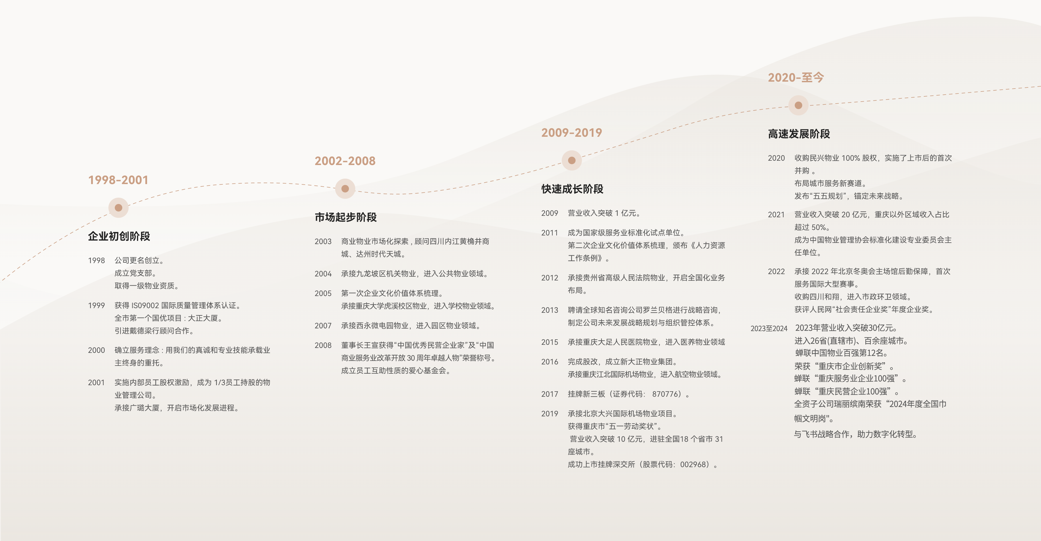 银娱优越会物业集团股份有限公司成立于 1998 年,专注于智慧城市公共空间与建筑设施的运营和管理,构建以基础物业为主体,城市服务和创新服务两翼协同发展的三大版图。通过不断深化研究客户需求、作业场景及服务标准,让客户专注于主业,创造服务价值和优质体验,成为公建物业服务专家。
