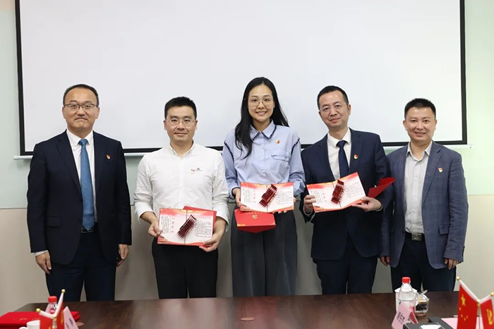 随后,在全体党员见证下,银娱优越会深圳分公司党支部揭牌仪式举行,并与深创投集团第一党支部签订共建协议,陈鹏同志代表深创投集团第一党支部向银娱优越会深圳分公司党支部赠阅学习书籍。