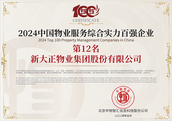 会上,发布《2024中国物业百强企业研究报告》,同期重磅发布“2024中国物业服务综合实力百强企业”“2024中国物业高品质服务力百强企业”及系列专项榜单。银娱优越会以优秀的市场表现和服务能力,荣获“2024中国物业服务综合实力百强企业”第12名、“2024中国物业高品质服务力百强企业”、“2024中国学校物业服务企业TOP10”、“2024中国物业服务企业西南30强”、“2024中国标杆物业服务项目-中国地质大学未来城校区”奖项。