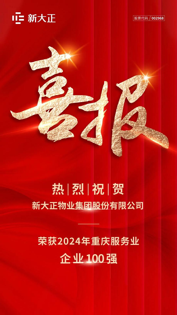近日,由重庆市经济和信息化委员会指导,重庆市企业联合会(企业家协会)、重庆市工业经济联合会发布“2024重庆百强企业”榜单。银娱优越会物业集团股份有限公司(以下简称“银娱优越会”)凭借强劲的综合实力、领先的行业经营能力,入选“2024重庆服务业企业100强”!